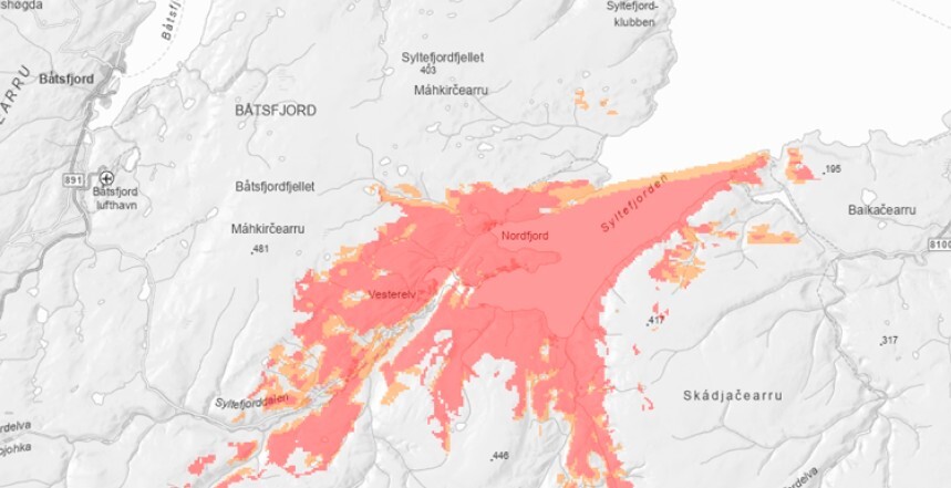 Under er et kartutsnitt av området som vil kunne oppleve periodevis redusert kvalitet eller manglende dekning denne perioden, i forbindelse med arbeidet.
